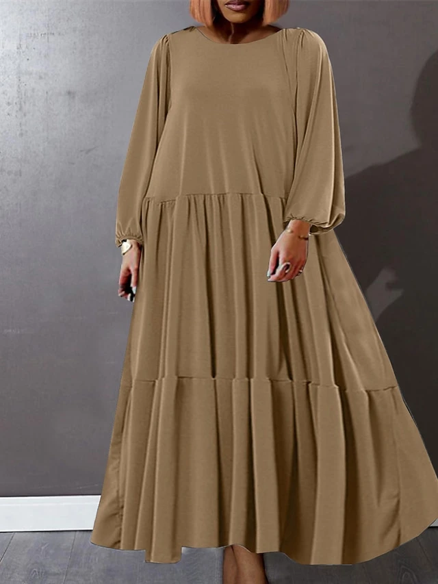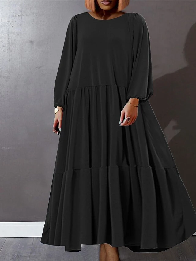 Women’s Plus Size Curve Casual Dress Swing Dress A Line Dress Solid Color Long Dress Maxi Dress Long Sleeve Ruched Ruffle Crew Neck Basic Outdoor Black Blue Fall Winter L XL XXL 3XL 4XL