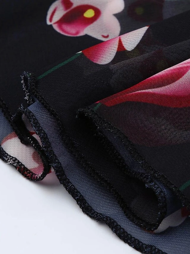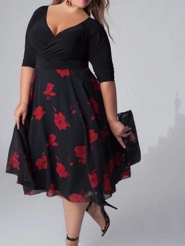 Women‘s Plus Size Curve Casual Dress Swing Dress Floral Midi Dress Half Sleeve Patchwork Print V Neck Classic Daily Black White Spring Fall L XL 3XL 4XL 5XL