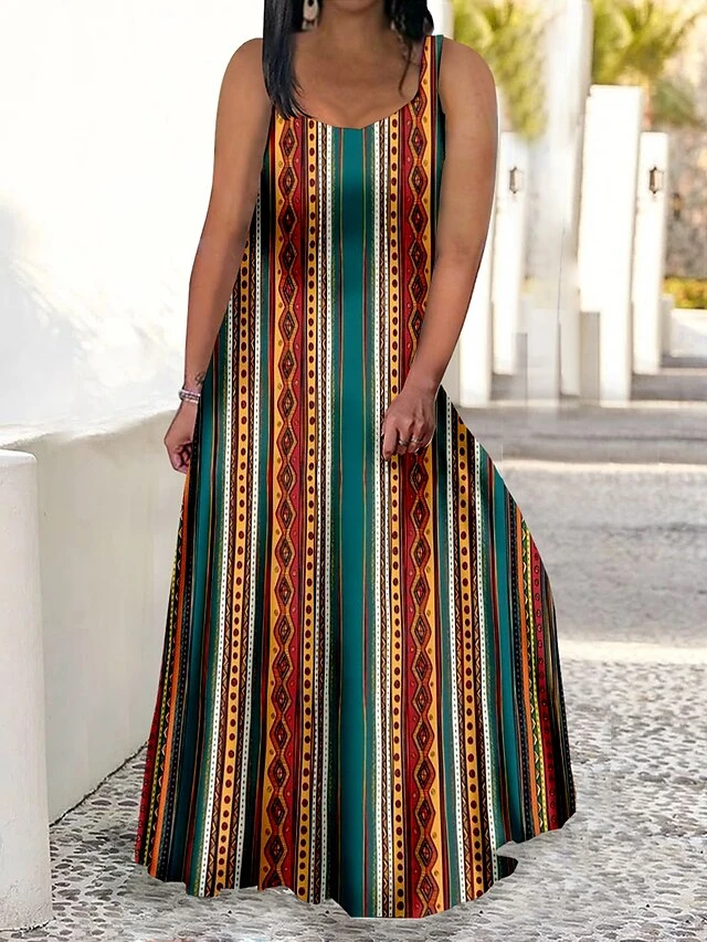 Women‘s Plus Size Curve Casual Dress Swing Dress Strap Dress Graphic Color Block Long Dress Maxi Dress Sleeveless Print Strap Romantic Daily Yellow Brown Summer Spring L XL XXL 3XL 4XL