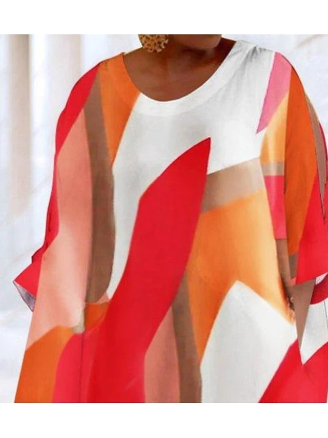 Women‘s Plus Size Curve Holiday Dress Print U Neck Print 3/4 Length Sleeve Fall Spring Casual Knee Length Dress Date Work Dress