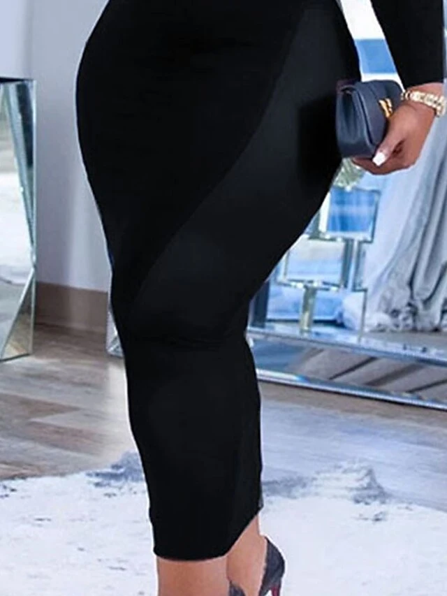 Women’s Plus Size Curve Party Dress Bodycon Sheath Dress Plain Long Dress Maxi Dress Long Sleeve Mesh Cut Out Crew Neck Fashion Party Black Fall Winter L XL XXL 3XL 4XL