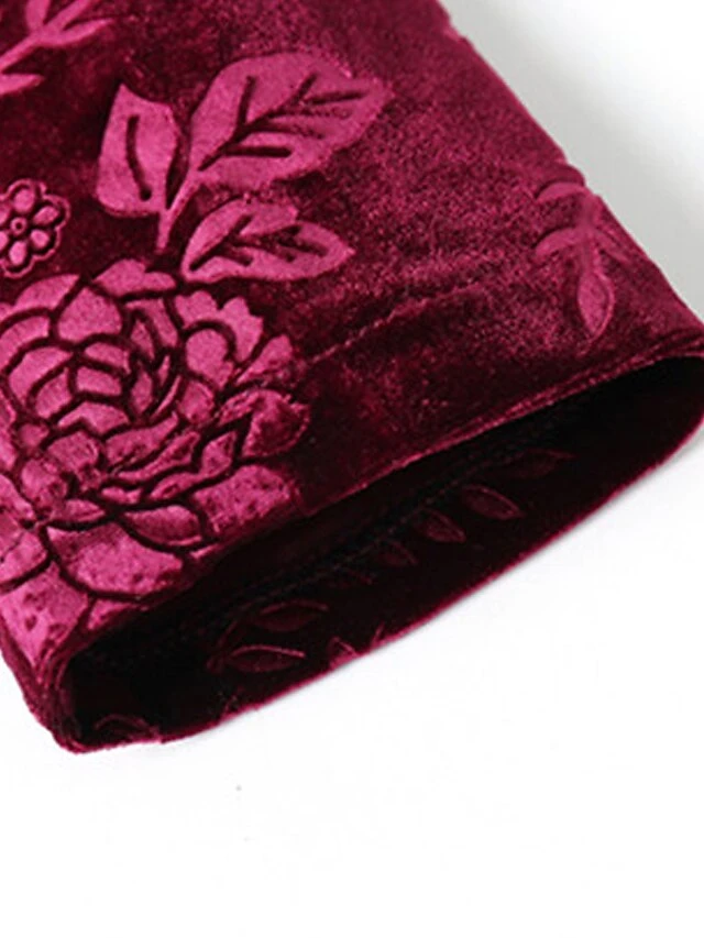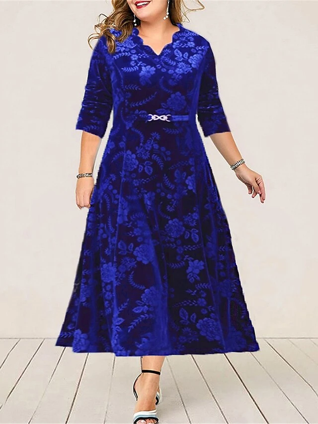 Women‘s Plus Size Curve Party Dress Cocktail Dress Wedding Guest Dress Midi Dress Wine Blue Purple 3/4 Length Sleeve Pure Color Jacquard Spring Fall Winter V Neck Fashion Winter Dress Wedding Guest