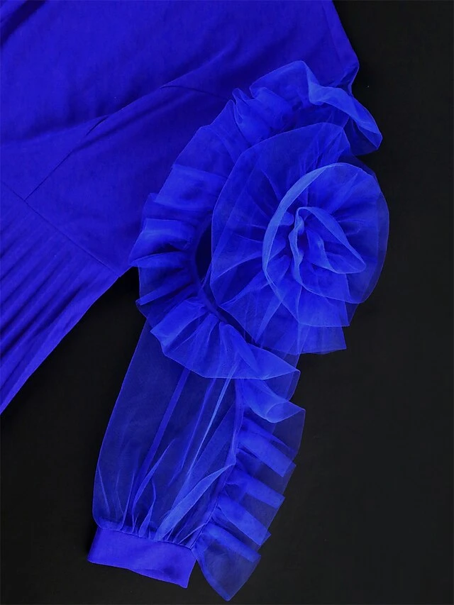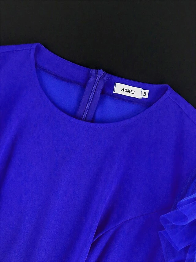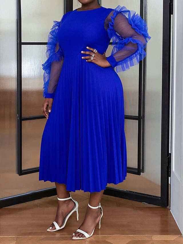 Women’s Plus Size Curve Party Dress Formal Dress A Line Dress Plain Midi Dress Long Sleeve Pleated Ruffle Crew Neck Fashion Party Blue Fall Winter XL XXL 3XL 4XL