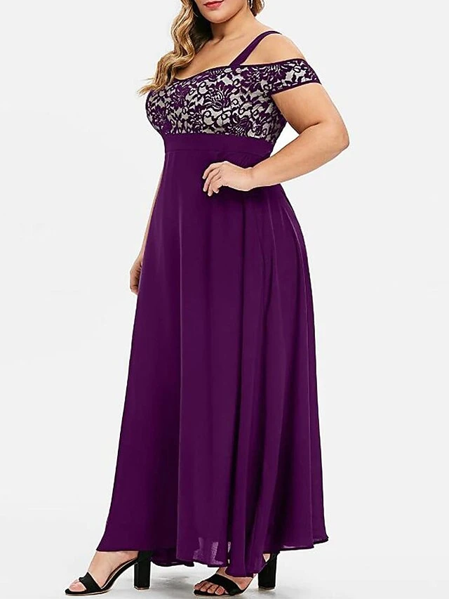 Women‘s Plus Size Curve Party Dress Homecoming Dress Formal Dress Solid Color Long Dress Maxi Dress Short Sleeve Lace Strap Modern Party Black Wine Summer Spring L XL XXL 3XL 4XL