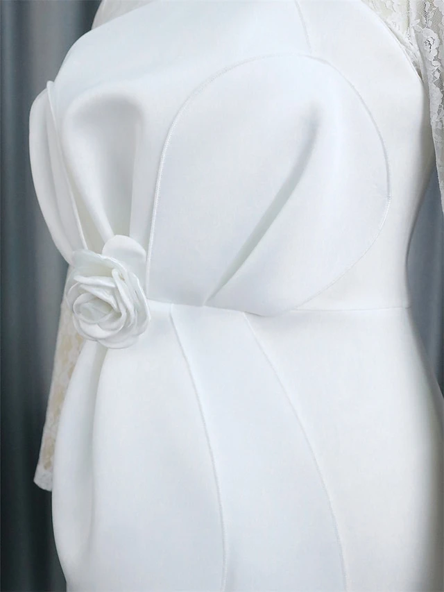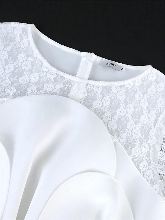 Women’s Plus Size Curve Party Dress Lace Dress Bodycon Plain Midi Dress Long Sleeve Lace Bow Crew Neck Fashion Party White Fall Winter XL XXL 3XL 4XL