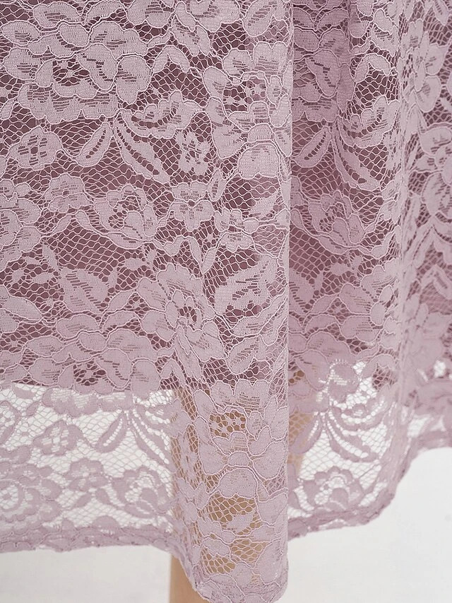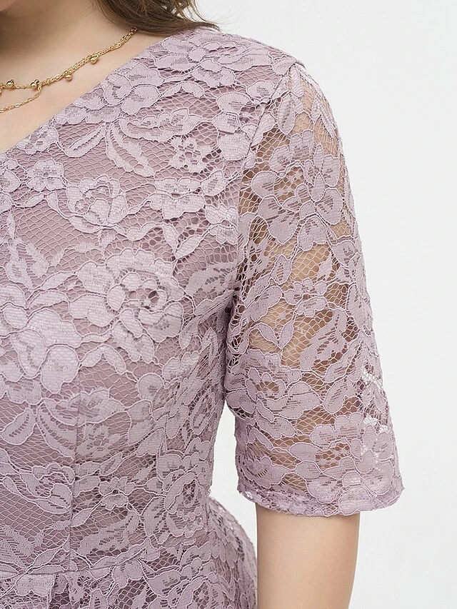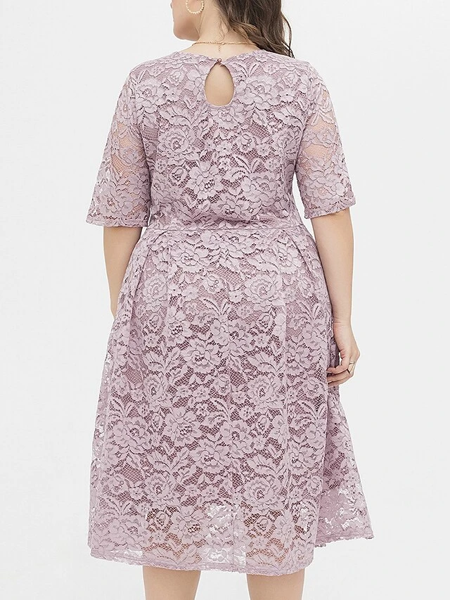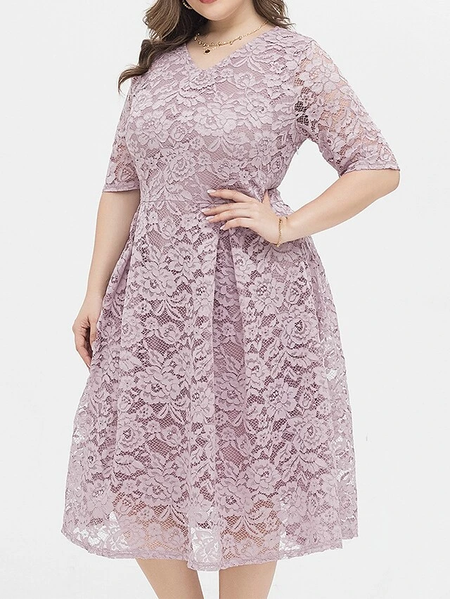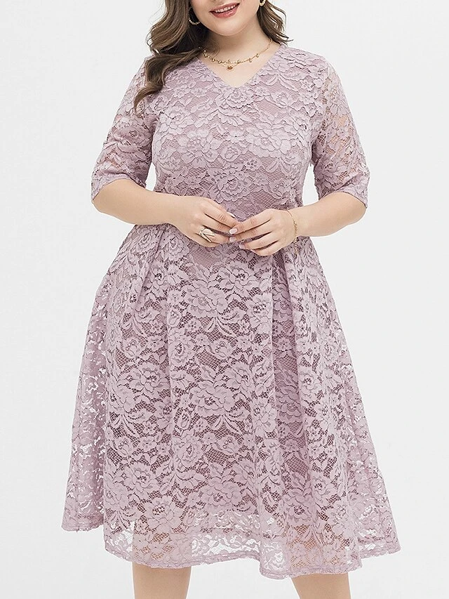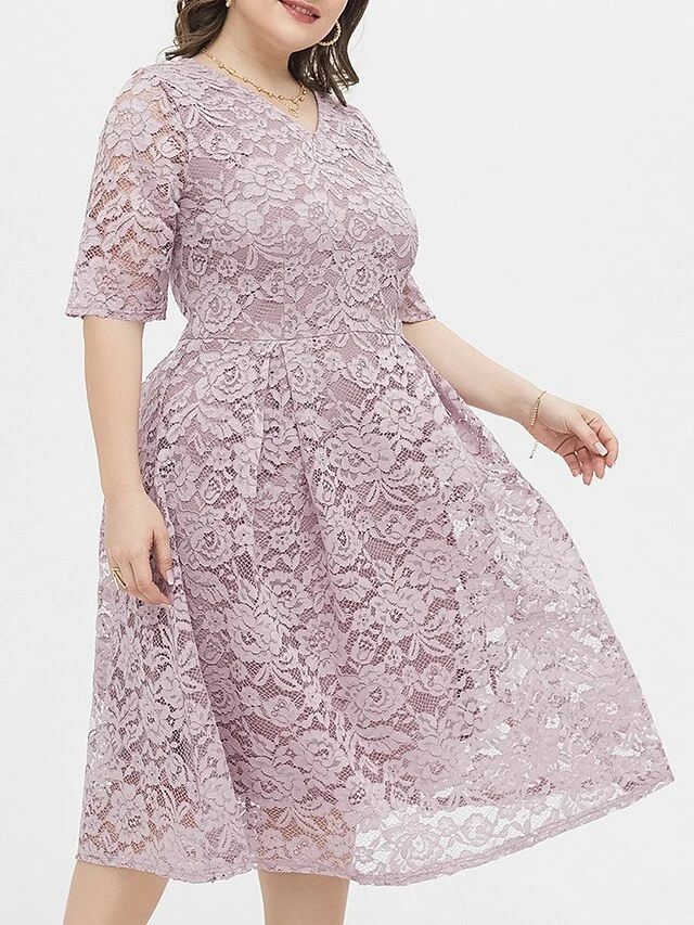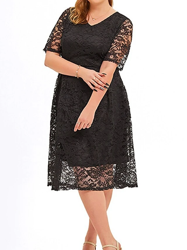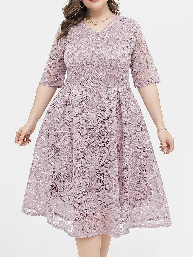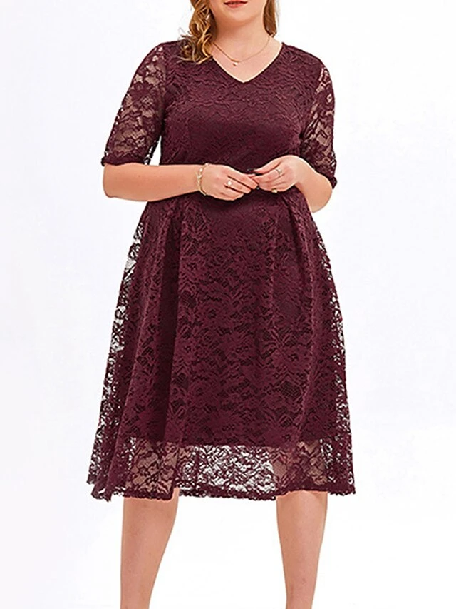 Women‘s Plus Size Curve Party Dress Lace Dress Cocktail Dress Midi Dress Black Pink Wine Half Sleeve Pure Color Lace Summer Spring Fall V Neck Fashion Birthday Wedding Guest Vacation 2023