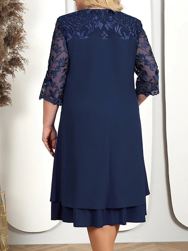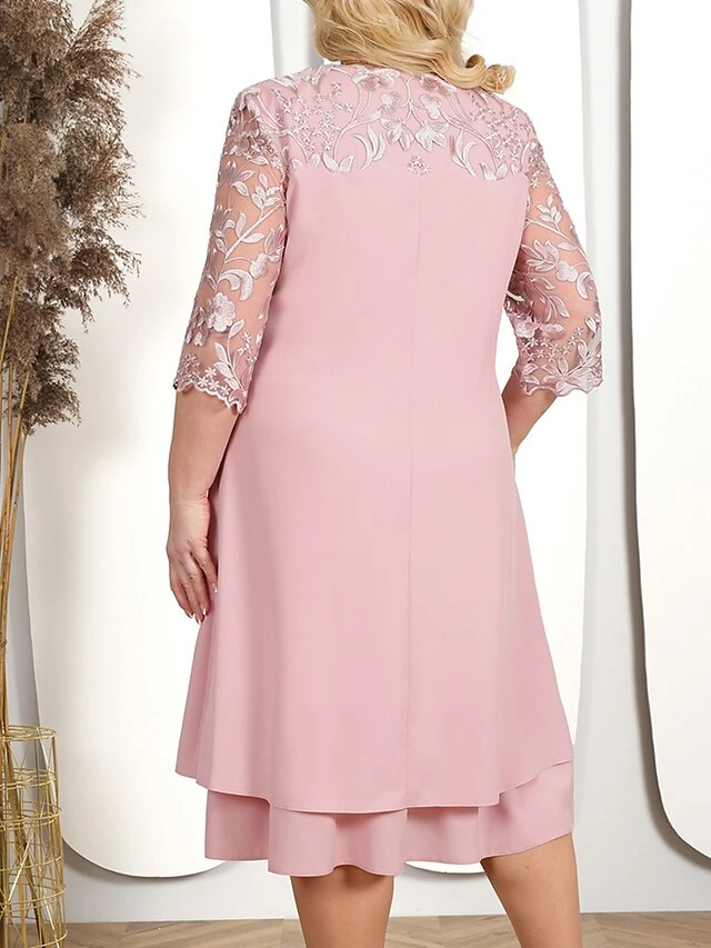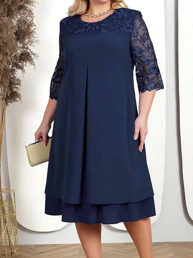 Women’s Plus Size Curve Party Dress Lace Dress Cocktail Dress Midi Dress Pink Dark Blue Light Blue 3/4 Length Sleeve Floral Lace Spring Fall Winter Crew Neck Fashion Birthday Wedding Guest