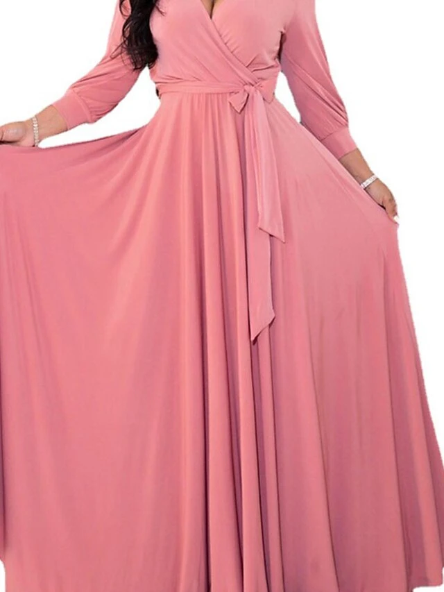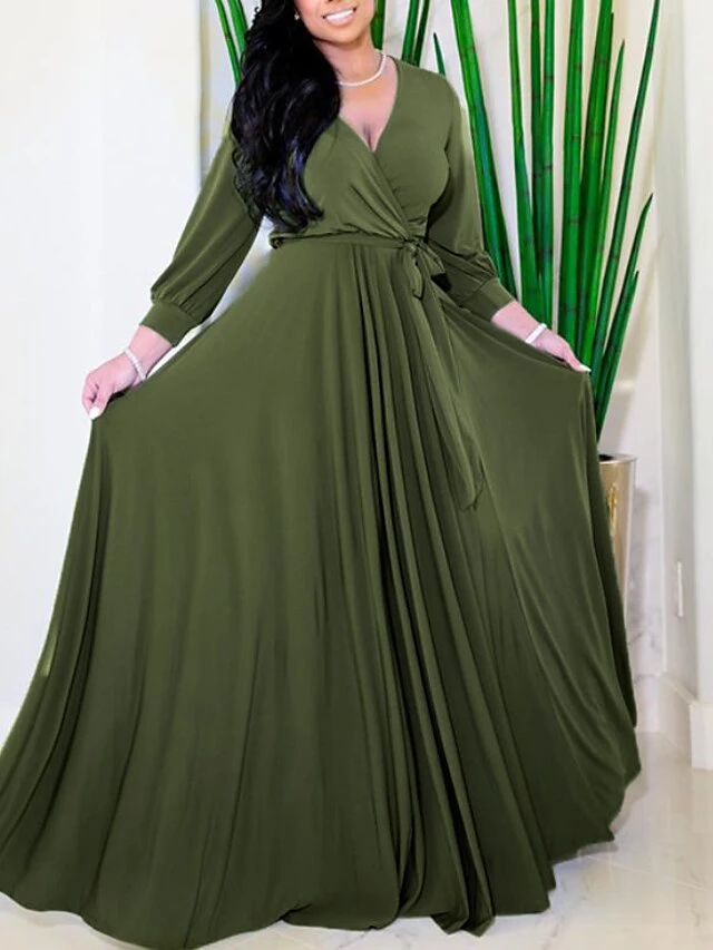 Women‘s Plus Size Curve Party Dress Solid Color V Neck Ruched Long Sleeve Winter Fall Elegant Prom Dress Maxi Long Dress Formal Party Dress