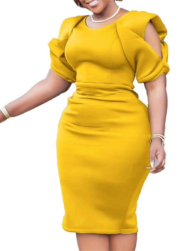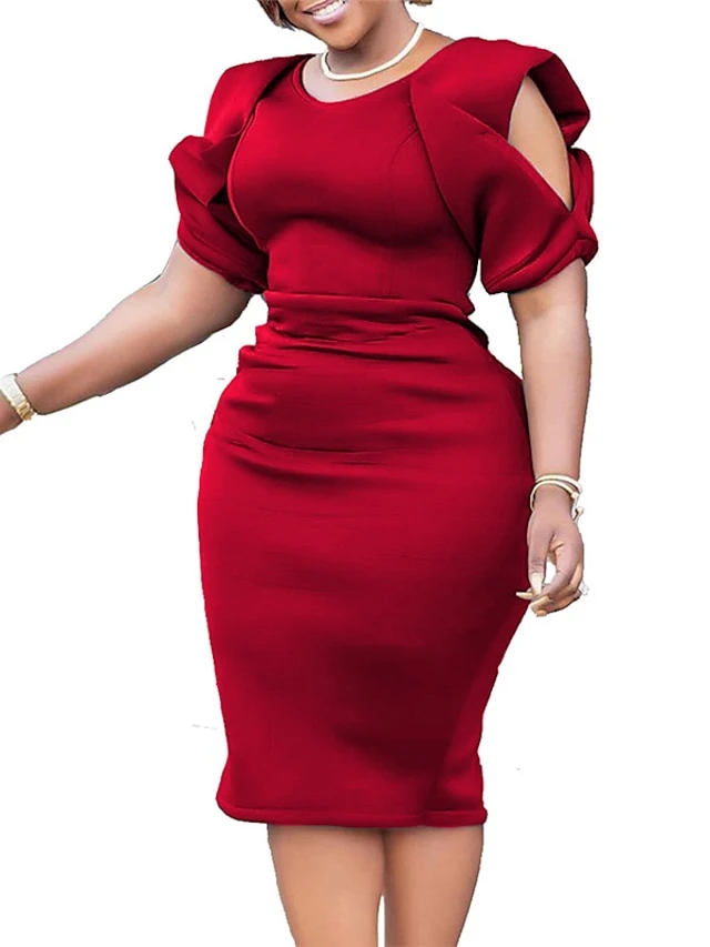 Women‘s Plus Size Curve Party Dress Solid Color V Neck Short Sleeve Spring Fall Work Formal Midi Dress Party Date Dress