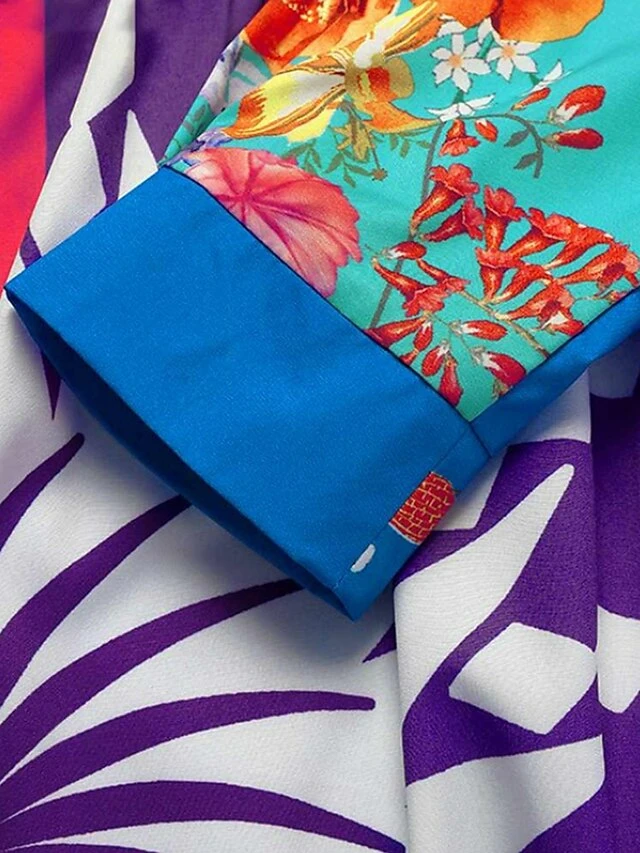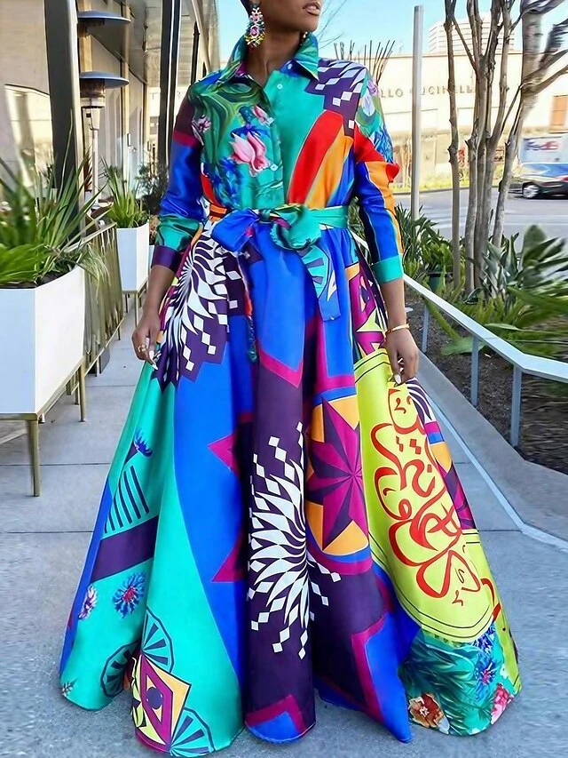 Women‘s Plus Size Curve Party Dress Swing Dress Graphic Long Dress Maxi Dress Long Sleeve Pocket Print Crew Neck Modern Party Blue Fall Spring L XL XXL 3XL 4XL