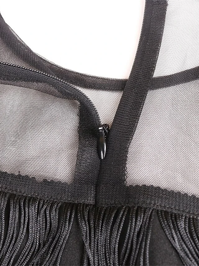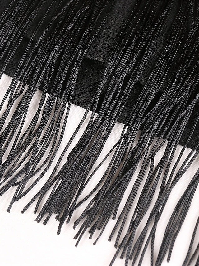 Women‘s Plus Size Curve Prom Dress Party Dress Fringe Dress Long Dress Maxi Dress Black Blue Short Sleeve Pure Color Tassel Fringe Summer Spring Fall Crew Neck Fashion Wedding Guest Vacation