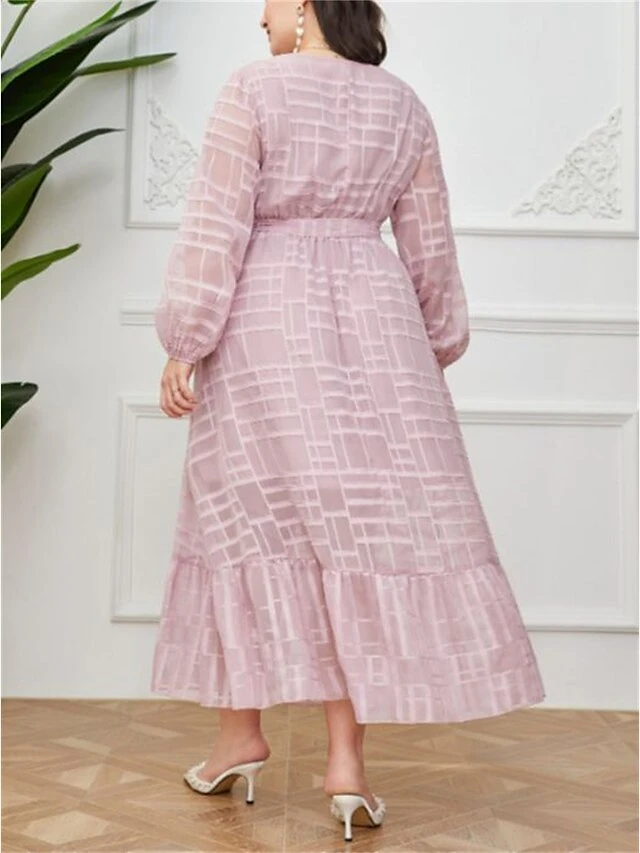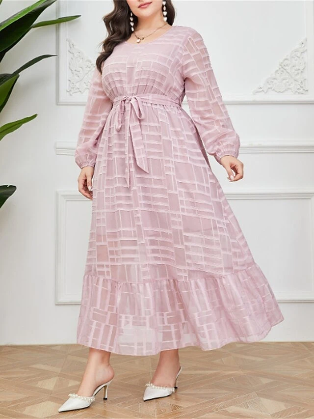 Women’s Plus Size Prom Dress Party Dress Wedding Guest Dress Long Dress Maxi Dress Pink Long Sleeve Pure Color Lace Up Fall Winter Autumn Crew Neck Fashion Winter Dress Evening Party Wedding Guest