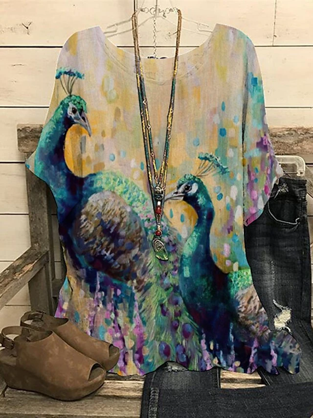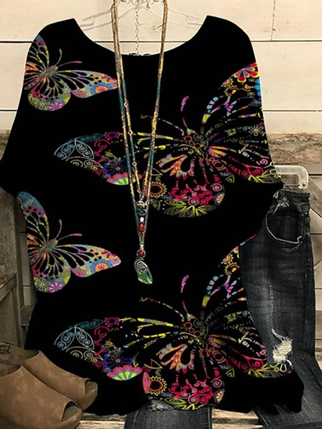 Women’s Plus Size T Shirt Tee Black Blue Purple Graphic Polka Dot Butterfly Print Short Sleeve Daily Going Out Weekend Punk & Gothic Round Neck Regular Fit Dolman Sleeve Summer Spring