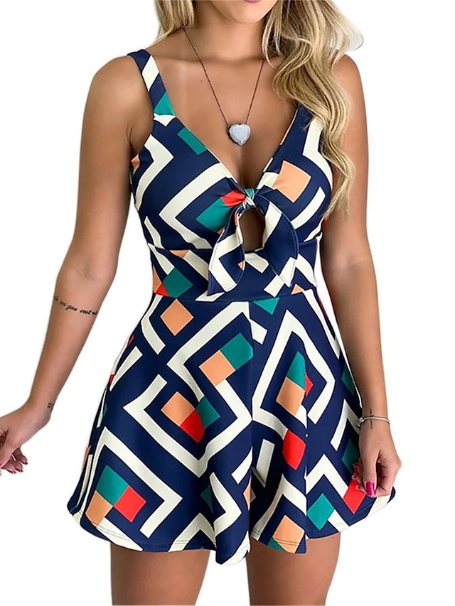 Women’s Romper Lace Up Cut Out Floral V Neck Streetwear Street Daily Regular Fit Strap Pink Navy Blue Blue S M L Summer