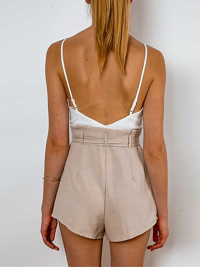 Women’s Romper Lace Up Patchwork Color Block V Neck Streetwear Street Daily Regular Fit Strap Apricot Gray S M L Summer
