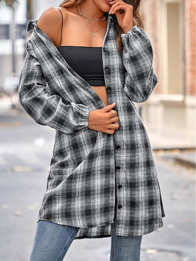Women’s Shirt Blouse Black Red Blue Plaid Print Long Sleeve Casual Basic Shirt Collar Regular Fit Spring &Fall