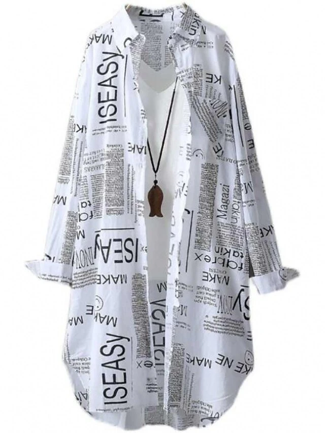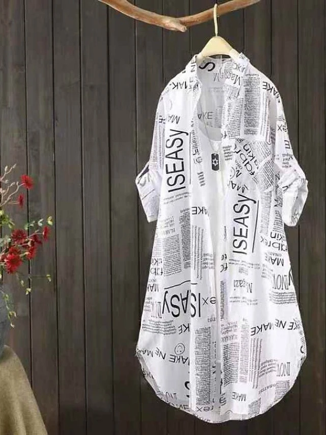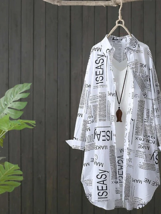 Women’s Shirt Blouse Cotton Black Orange Green Letter Print Long Sleeve Casual Casual Shirt Collar Regular Fit Spring &Fall