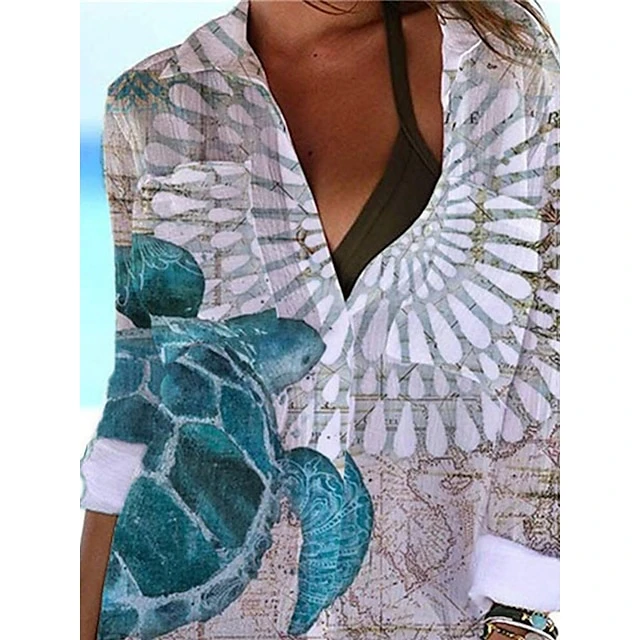 Women’s Shirt Dress Beach Dress Beach Wear Mini Dress Print Fashion Casual Graphic V Neck Long Sleeve Loose Fit Daily Vacation Blue 2023 Spring Summer S M L XL