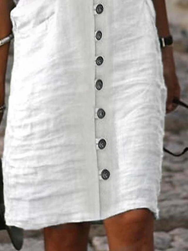 Women’s Shirt Dress Casual Dress Cotton Linen Dress Midi Dress Cotton Blend Classic Modern Outdoor Daily Vacation Split Neck Button Half Sleeve Summer Spring Fall 2023 Loose Fit White Plain S M L XL