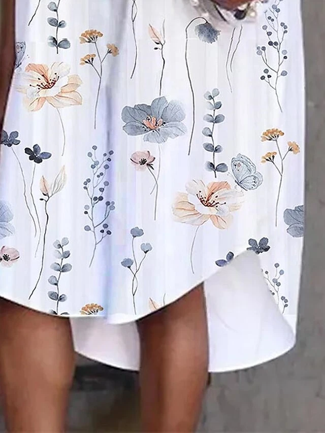 Women’s Shirt Dress Casual Dress Cotton Linen Dress Midi Dress Polyester Fashion Casual Outdoor Daily Vacation Shirt Collar Asymmetric Print Short Sleeve Summer Spring 2023 Loose Fit White Floral S M