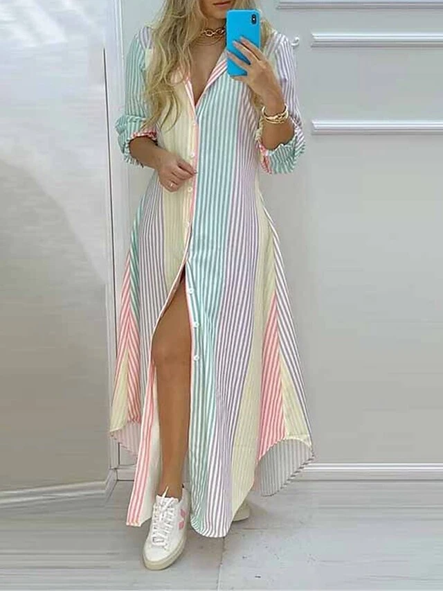 Women’s Shirt Dress Casual Dress Maxi Long Dress Outdoor Daily Date Polyester Fashion Modern Shirt Collar Button Split Long Sleeve Summer Spring Fall 2023 Regular Fit Black White Yellow Leaf Letter