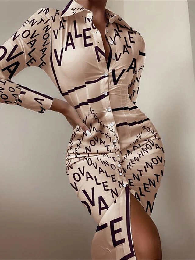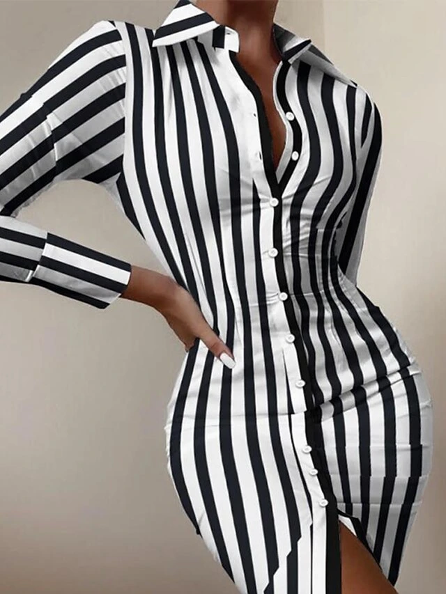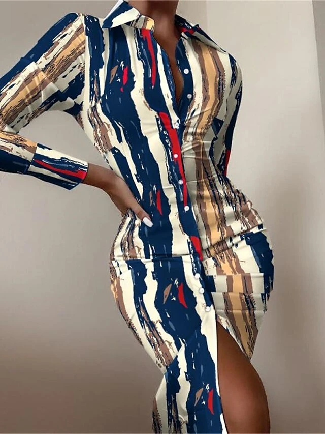 Women’s Shirt Dress Casual Dress Midi Dress Outdoor Daily Vacation Polyester Fashion Casual Shirt Collar Button Long Sleeve Spring Fall Winter 2023 Regular Fit Black White Red Letter Tie Dye Striped