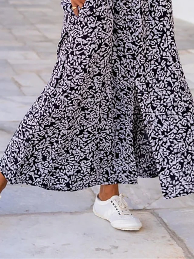 Women’s Shirt Dress Casual Dress Midi Dress Outdoor Daily Vacation Polyester Fashion Modern Shirt Collar Pocket Split 3/4 Length Sleeve Summer Spring Fall 2023 Loose Fit Black Floral S M L XL 2XL