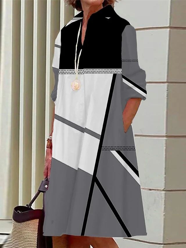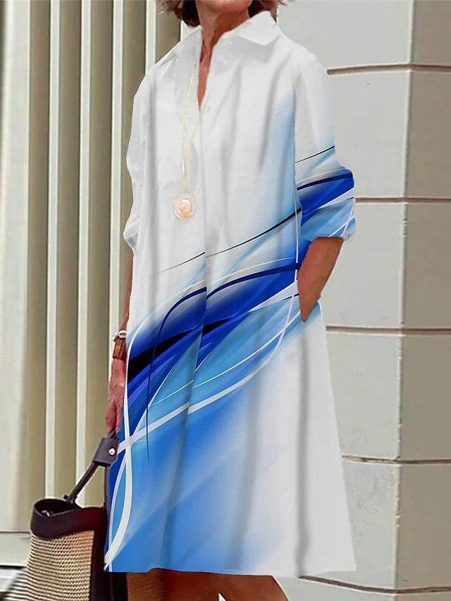 Women’s Shirt Dress Casual Dress Midi Dress Outdoor Office Daily Polyester Fashion Modern Shirt Collar Button Pocket Long Sleeve Summer Spring Fall 2023 Loose Fit Black White Yellow Ombre S M L XL 2XL