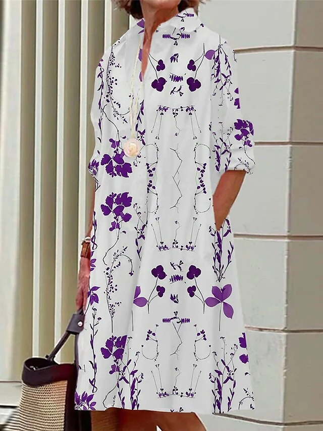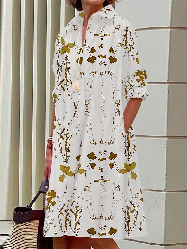 Women’s Shirt Dress Casual Dress Midi Dress Outdoor Office Daily Polyester Fashion Modern Shirt Collar Button Pocket Long Sleeve Summer Spring Fall 2023 Loose Fit White Yellow Red Floral S M L XL 2XL