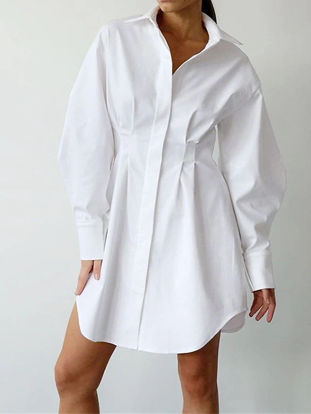 Women’s Shirt Dress Casual Dress Mini Dress Outdoor Daily Date Polyester Fashion Basic Shirt Collar Button Long Sleeve Fall Winter 2023 Regular Fit Black White Brown Pure Color S M L