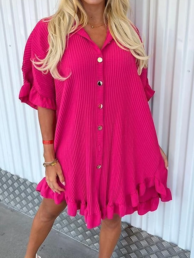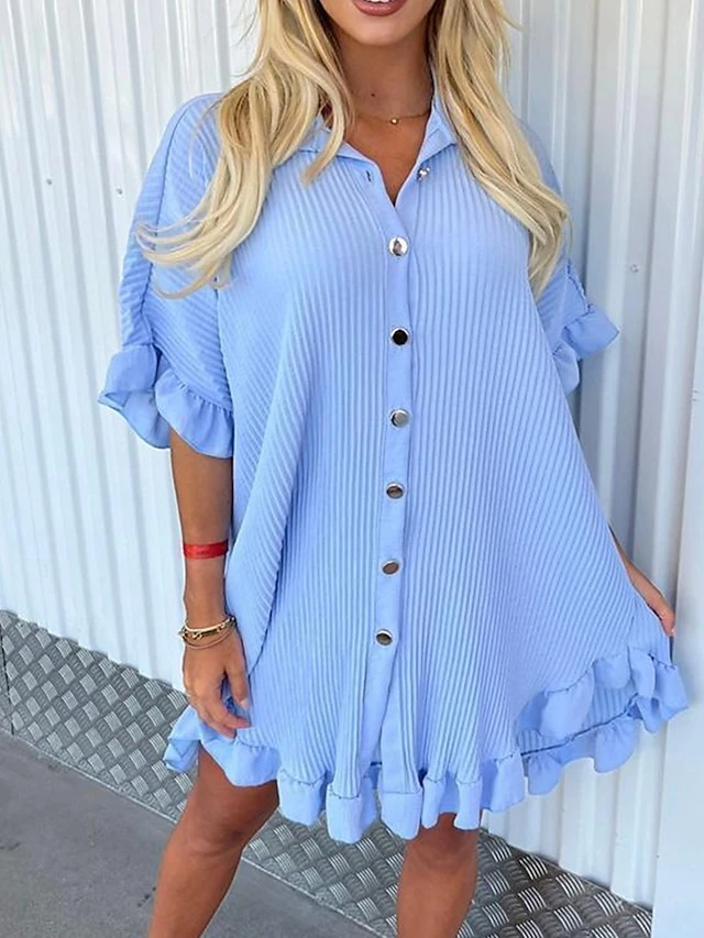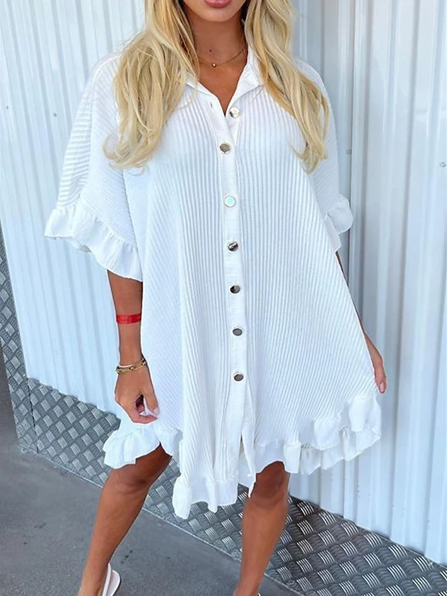 Women’s Shirt Dress Casual Dress Mini Dress Outdoor Daily Vacation Polyester Fashion Modern Shirt Collar Ruffle Button Half Sleeve Summer Spring Fall 2023 Regular Fit ArmyGreen Black White Plain S M