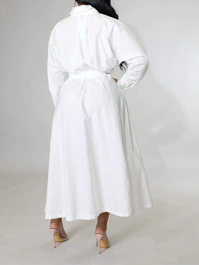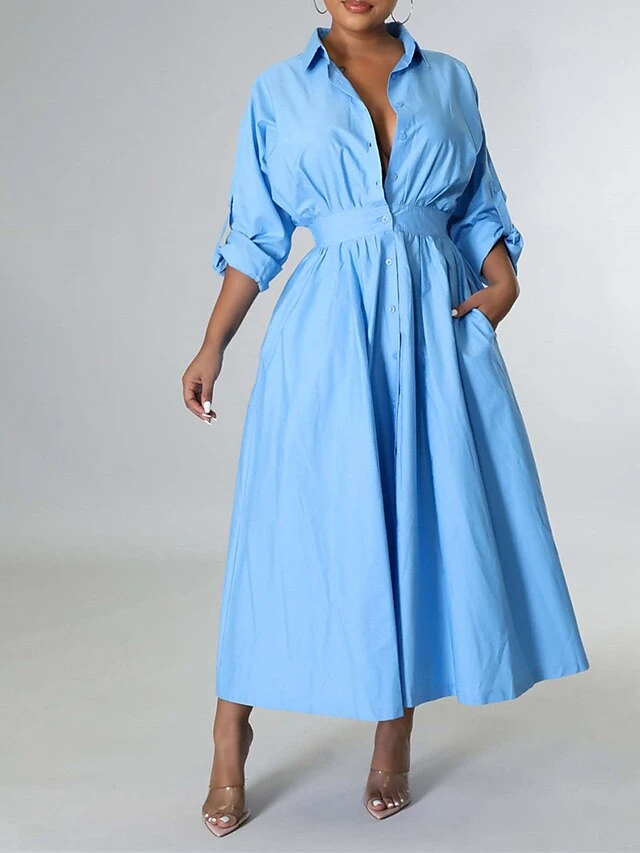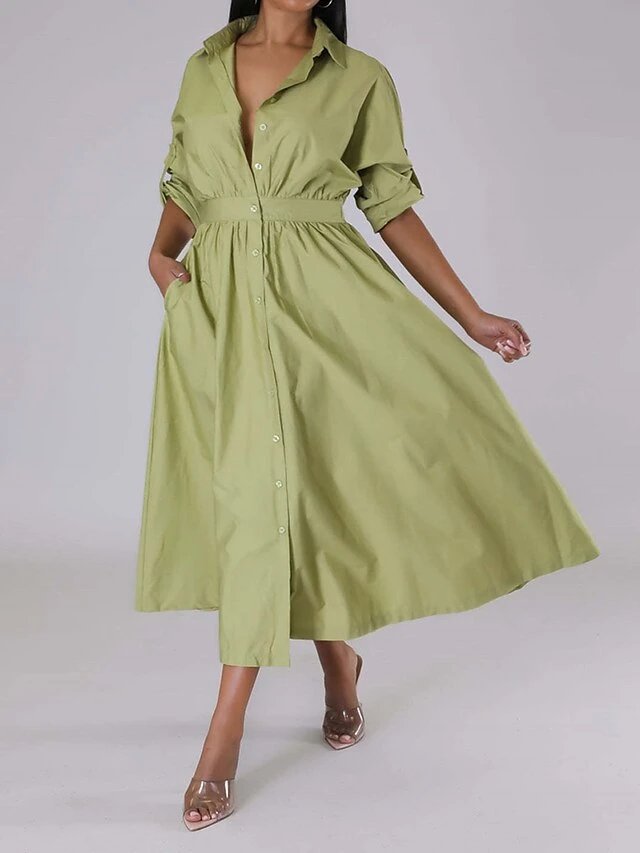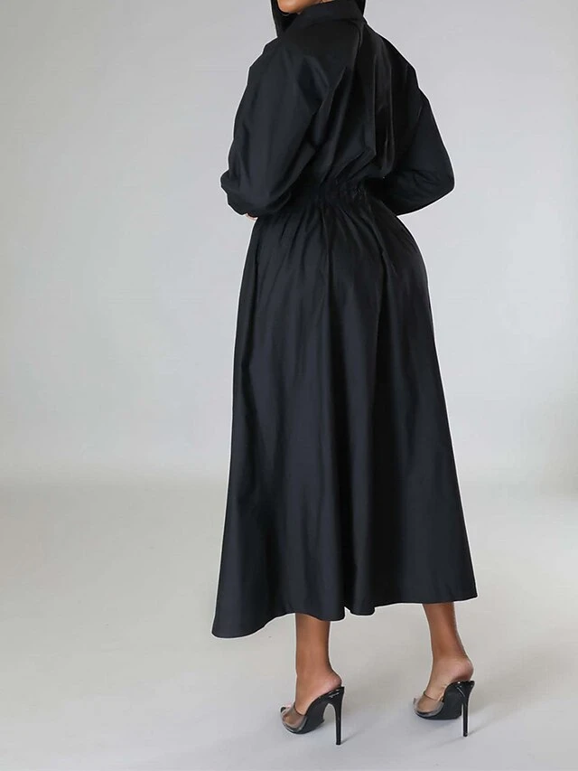 Women’s Shirt Dress Casual Dress Swing Dress Maxi Long Dress Outdoor Daily Vacation Cotton And Linen Fashion Casual Shirt Collar Button Rolled Cuff Long Sleeve Spring Fall Winter 2023 Slim Black