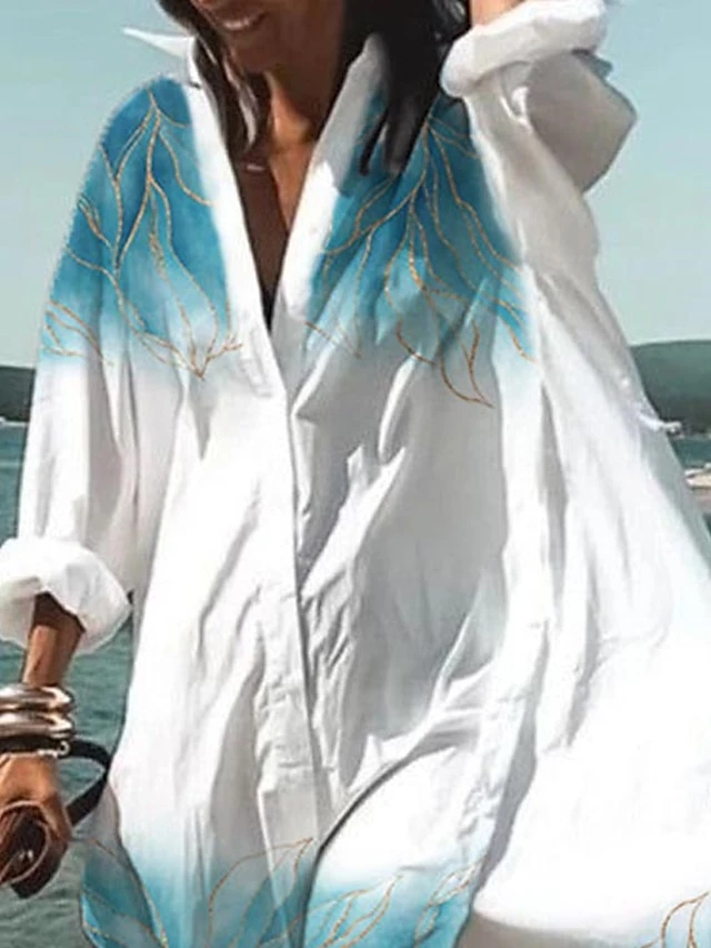 Women’s Shirt Dress Cover Up Beach Wear Mini Dress Button Print Fashion Casual Graphic V Neck Long Sleeve Loose Fit Outdoor Daily White 2023 Spring Summer S M L XL