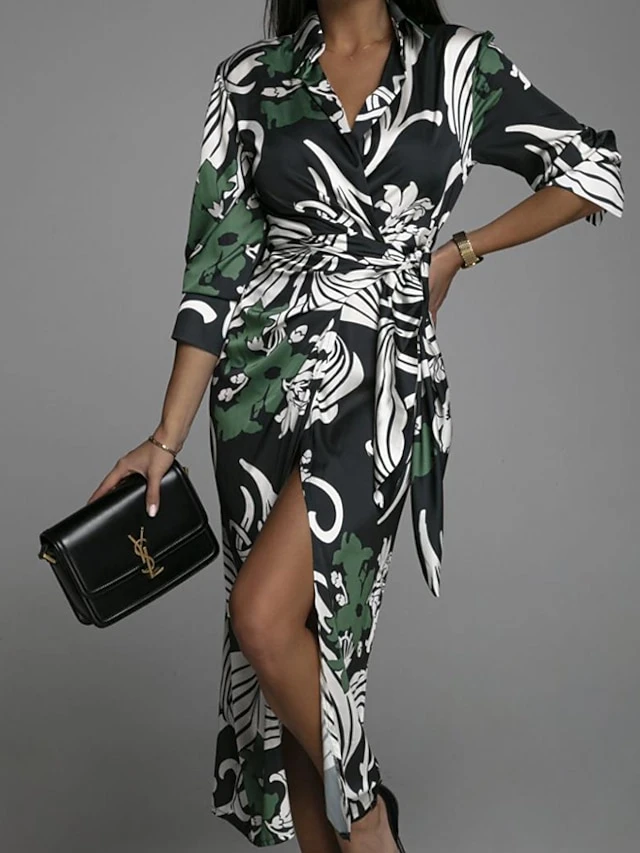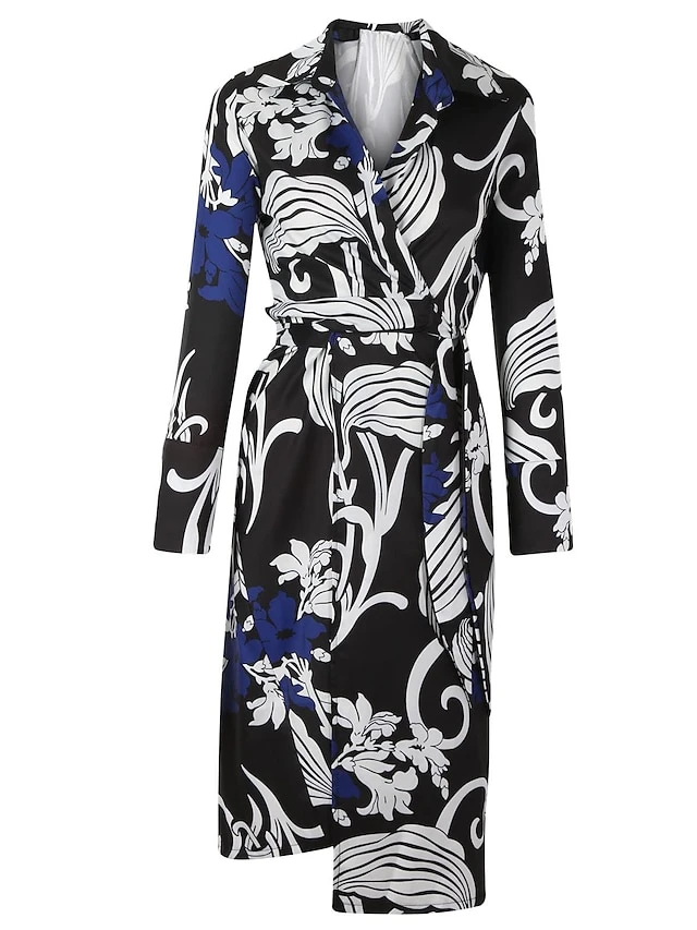Women’s Shirt Dress Work Dress Formal Dress Maxi Long Dress Daily Sports Date Polyester Fashion Elegant V Neck Tie Belt Print Long Sleeve Summer Spring Fall 2023 Regular Fit Blue Green Print Flower