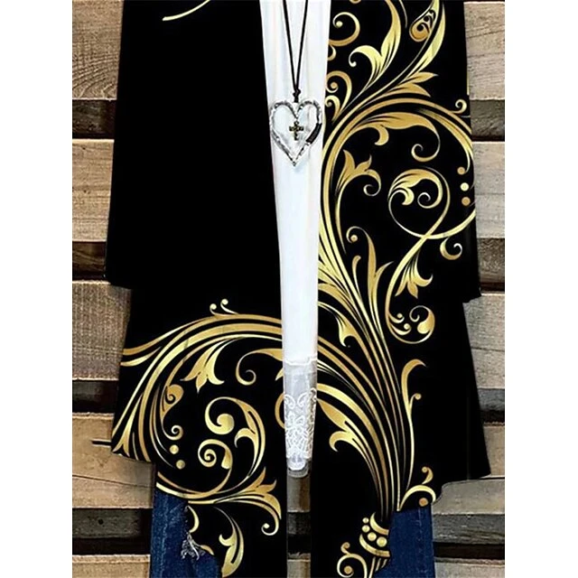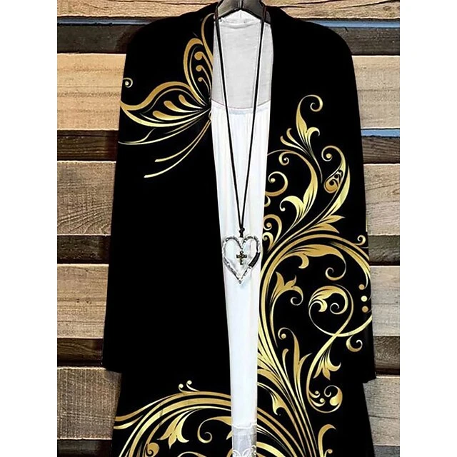 Women’s Shirt Shrugs 2 Pieces Outfits Black Red Blue Graphic Floral Print Long Sleeve Casual Basic V Neck Loose Fit Floral Spring &Fall
