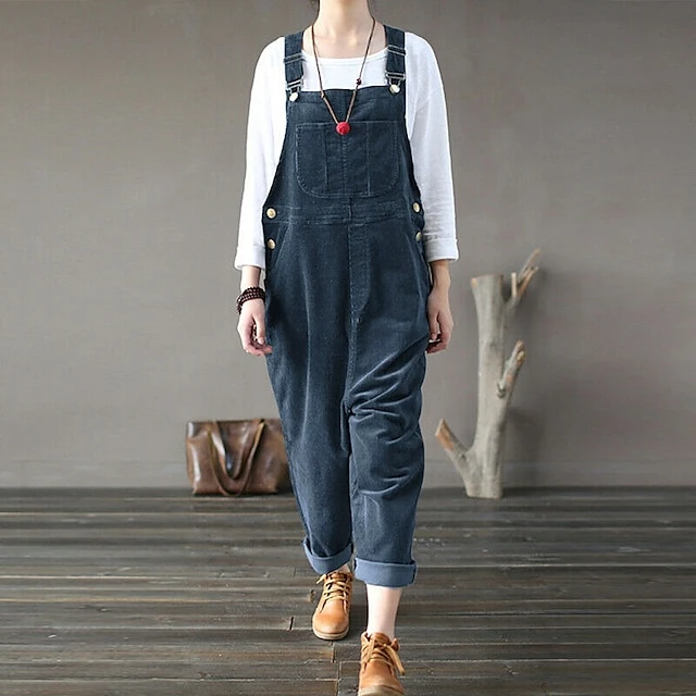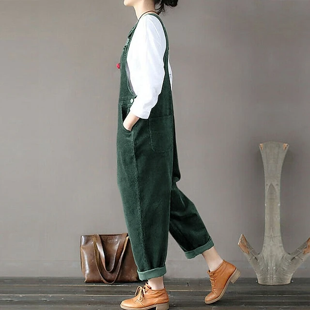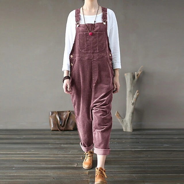 Women’s Slacks Pants Trousers Jumpsuit Rompers Bib Corduroy Green Blue Purple Mid Waist Fashion Streetwear Casual Weekend Pocket Ankle-Length Comfort Plain S M L XL XXL