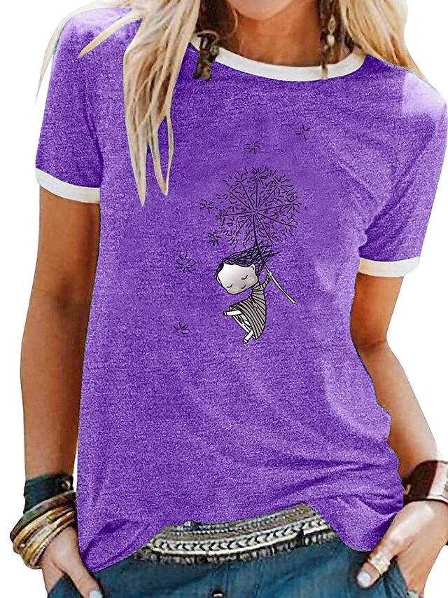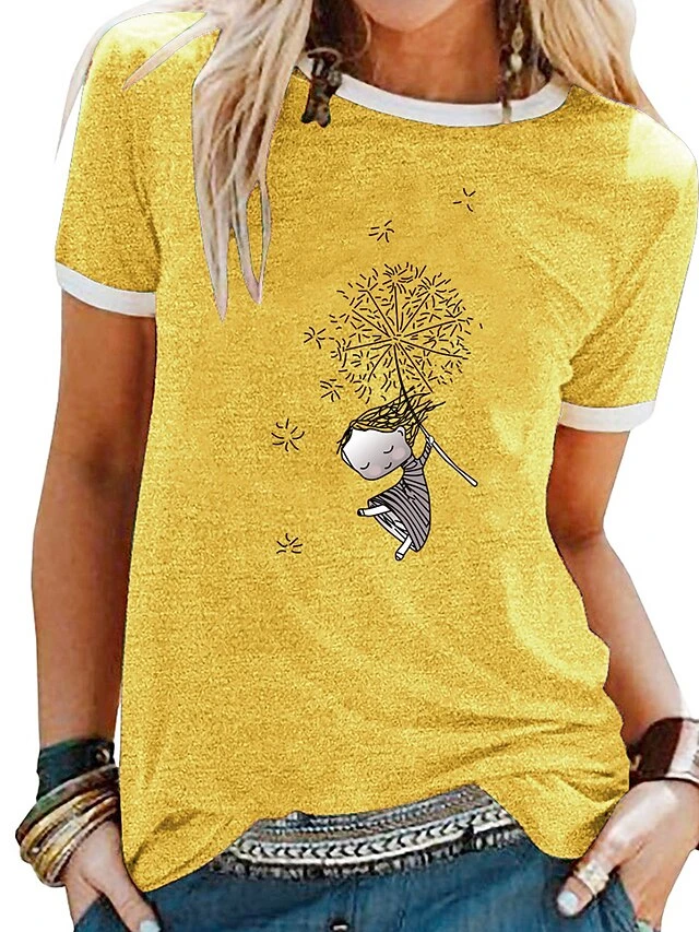 Women’s T Shirt Tee 100% Cotton Black White Yellow Graphic Prints Patchwork Print Short Sleeve Daily Weekend Basic Round Neck Regular S