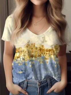 Women’s T Shirt Tee Brown Dog Print Short Sleeve Daily Weekend Basic V Neck Regular Fit Painting