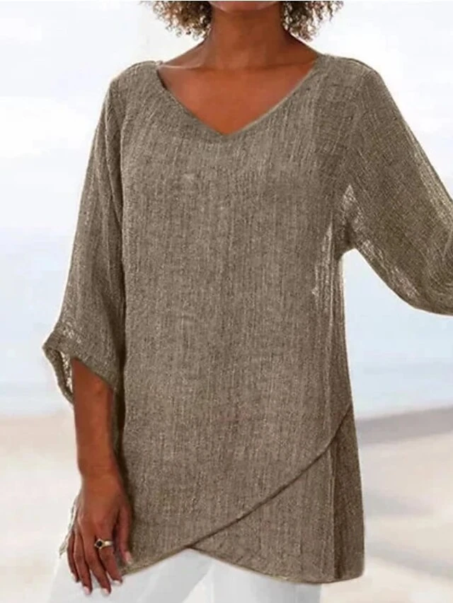 Women’s Shirt Blouse Black Pink Blue Plain Asymmetric Half Sleeve Casual Basic V Neck Regular Fit