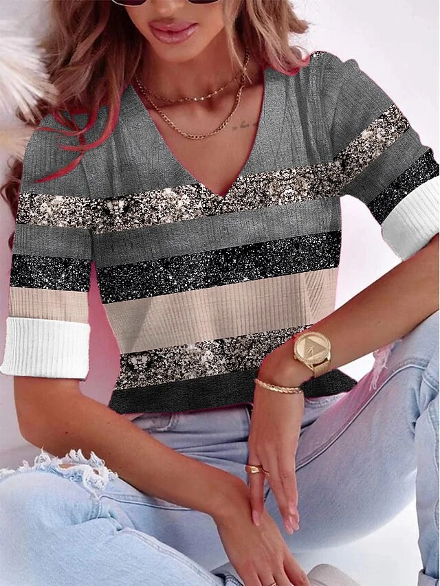 Women’s T Shirt Tee Yellow Pink Peach Graphic Print Long Sleeve Daily Weekend Daily Basic Neon & Bright V Neck Regular Fit Painting Fall & Winter