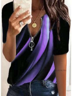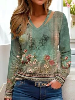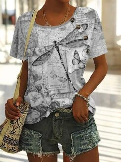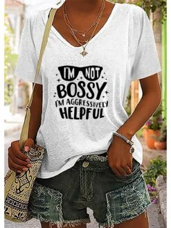 Women’s T Shirt Tee Brown Dog Print Short Sleeve Daily Weekend Basic V Neck Regular Fit Painting
