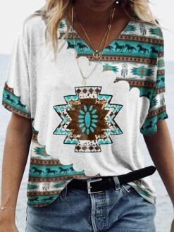 Women’s T Shirt Tee Rainbow Heart Tie Dye Short Sleeve Daily Basic V Neck Regular Heart S
