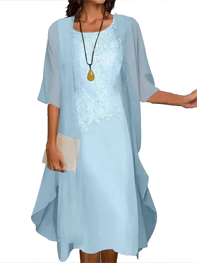 Women’s Two Piece Dress Set Casual Dress Lace Dress Outdoor Daily Fashion Casual Lace Midi Dress Crew Neck 3/4 Length Sleeve Plain Regular Fit Blue Gray Spring Summer S M L XL 4XL