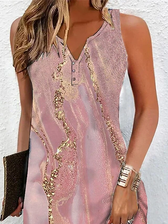 Women’s Two Piece Dress Set Casual Dress Print Dress Outdoor Daily Fashion Streetwear Button Print Mini Dress V Neck Short Sleeve Ombre Marble Print Regular Fit Pink Summer Spring S M L XL XXL