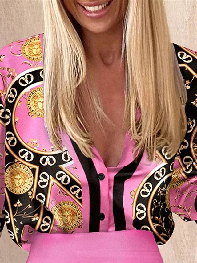 Women’s Two Piece Dress Set Casual Dress Skirt Set Daily Holiday Fashion Streetwear Button Print Mini Dress V Neck Long Sleeve Print Loose Fit Rose Red Fall Winter S M L XL