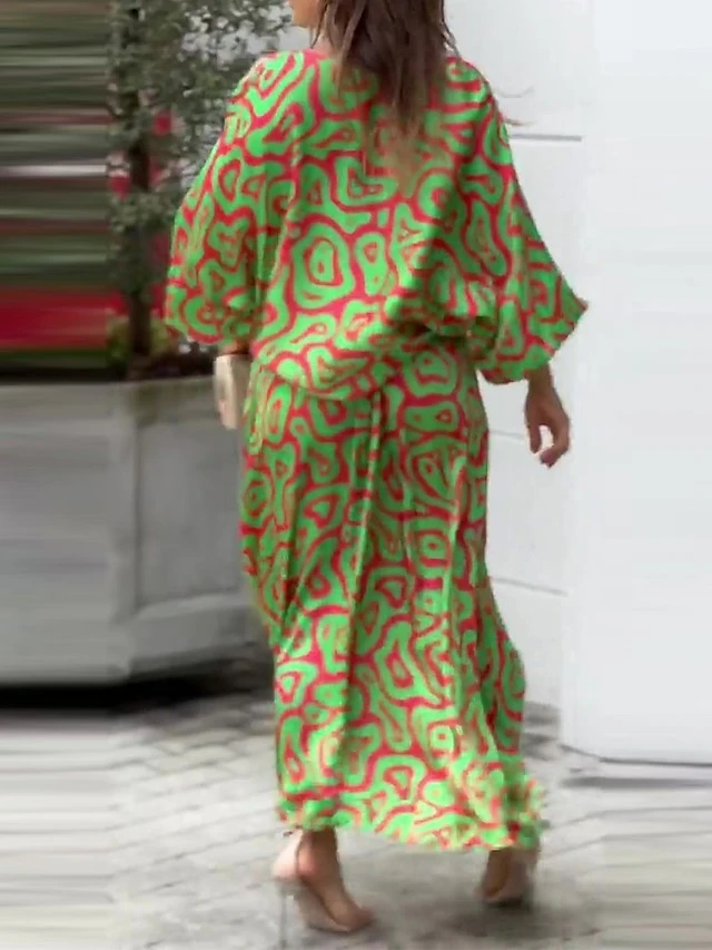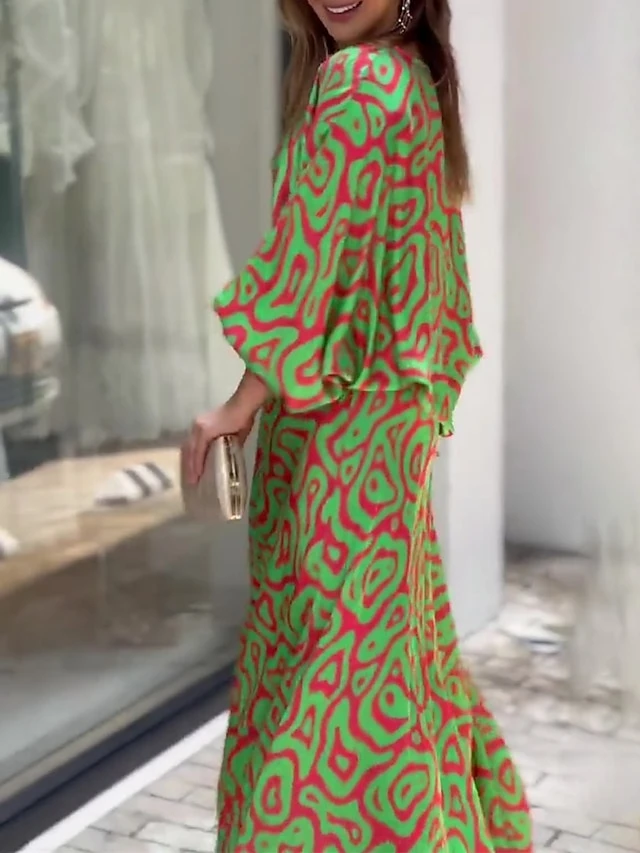 Women’s Two Piece Dress Set Casual Dress Skirt Set Daily Vacation Fashion Casual Print Long Dress Maxi Dress Crew Neck Long Sleeve Floral Stripe Loose Fit White Blue Sky Blue Summer Spring S M L XL