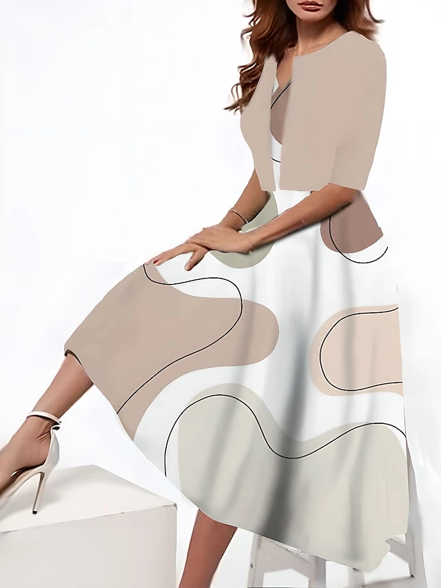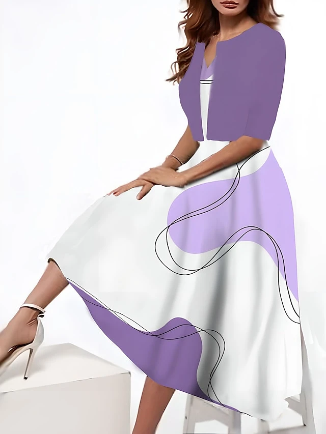 Women’s Two Piece Dress Set Casual Dress Tank Dress Outdoor Daily Fashion Streetwear Pocket Print Midi Dress V Neck 3/4 Length Sleeve Geometric Color Block Regular Fit Black Blue Purple Summer Spring