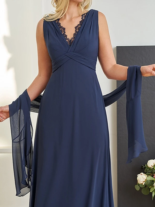 Women’s Two Piece Dress Set Party Dress Lace Dress Party Outdoor Fashion Streetwear Lace Patchwork Long Dress Maxi Dress V Neck Sleeveless Plain Regular Fit Navy Blue Fall Winter S M L XL XXL