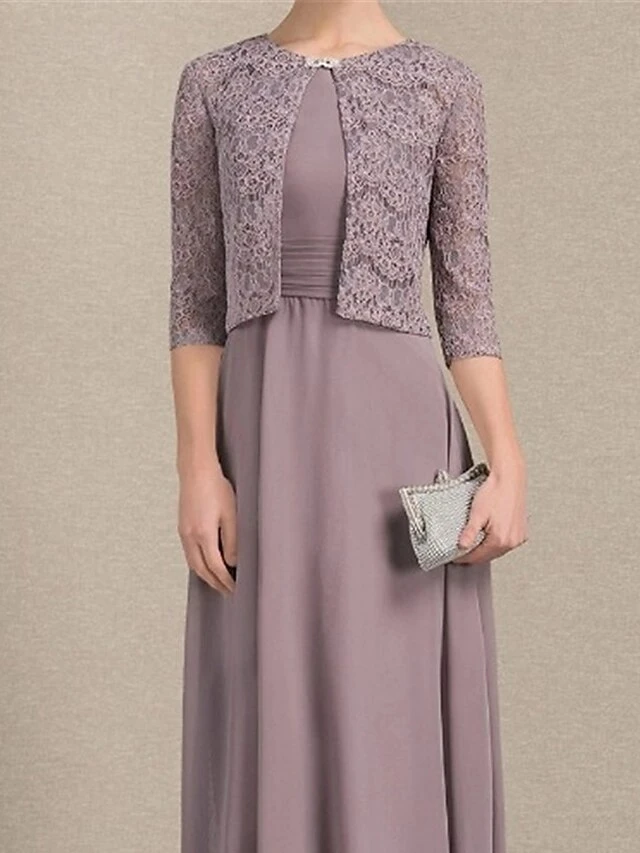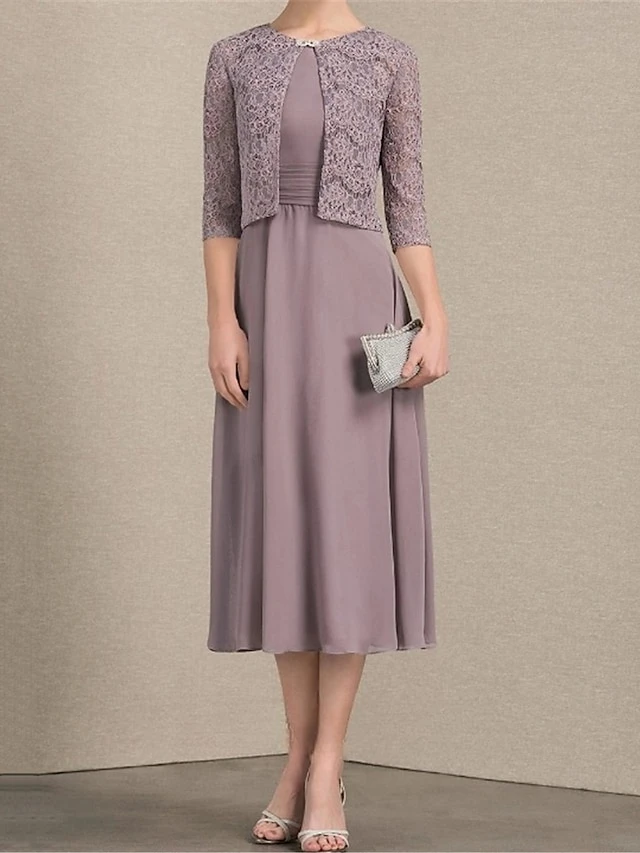 Women’s Two Piece Dress Set Party Dress Lace Dress Party Outdoor Fashion Streetwear Lace Patchwork Midi Dress Crew Neck 3/4 Length Sleeve Plain Regular Fit Purple Fall Winter S M L XL XXL