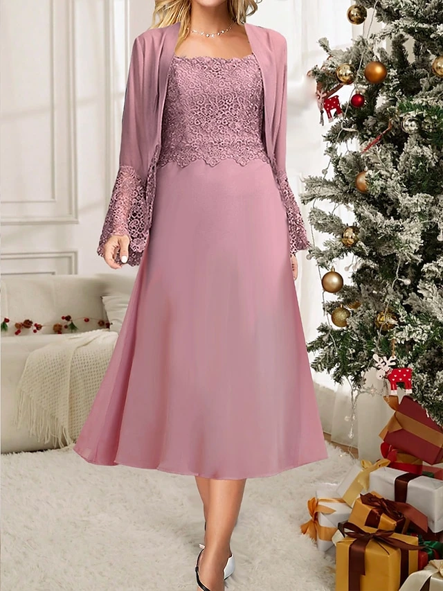 Women’s Two Piece Dress Set Party Dress Lace Dress Party Outdoor Fashion Streetwear Lace Patchwork Midi Dress Crew Neck Long Sleeve Plain Regular Fit Purple Fall Winter S M L XL XXL